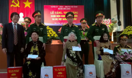 Tại buổi lễ, thừa ủy quyền của Chủ tịch nước, các đ/c lãnh đạo Huyện ủy – UBND – UBMTTQ huyện trao Huy hiệu và Bằng Danh hiệu vinh dự nhà nước “Bà mẹ Việt Nam anh hùng” cho 3 mẹ là mẹ Nguyễn Thị Nhứ, mẹ Phạm Thị Quất, xã khởi nghĩa, mẹ Phạm Thị Vê, xã Hùng Thắng và trao Bằng Danh hiệu vinh dự nhà nước “Bà mẹ Việt Nam anh hùng” cho thân nhân 64 mẹ.