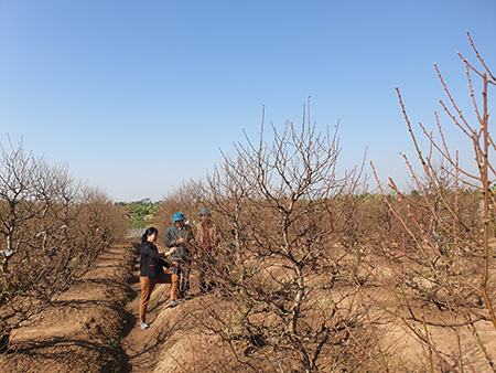 Những ngày cuối năm, nếu ghé thăm khu vực trồng đào ở thôn Đoàn Kết mới thấy sự công phu, tỉ mỉ, niềm say mê của những người nông dân với nghề mang lại niềm vui cho đời và góp phần tô thêm sắc Xuân.