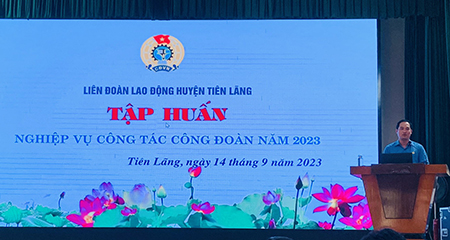 Sáng ngày 14/09, Liên đoàn lao động huyện phối hợp Trung tâm chính trị huyện tổ chức Khai giảng Lớp tập huấn nghiệp vụ công đoàn năm 2023. Dự lớp tập huấn có đồng chí Đặng Đức Hiển – Uỷ viên Ban Thường vụ, Trưởng ban tổ chức kiểm tra LĐLĐ thành phố, đại diện các cơ quan đơn vị liên quan.